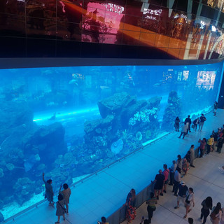 Die Dubai Mall ist obszön groß und beherbergt neben drölf trilliarden Geschäften ein gigantisches Aquarium inkl. Haien und Stachelrochen auch eine richtige Eisbahn.