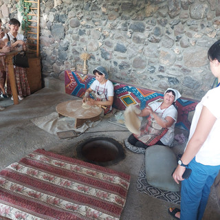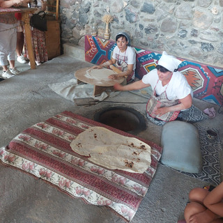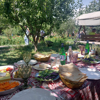 Im selben Ort sind wir zu einem Haus mit großem grünen Garten gefahren um zum einem zu sehen wir Lavash, sowas wie dünnes Fladenbrot gemacht wird und um danach Mittag zu essen.