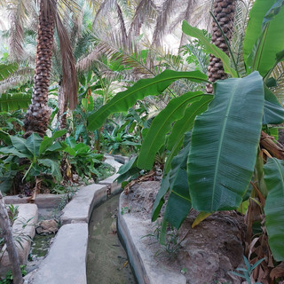 Überall wächst es grün. Es gibt viele Palmen. Die rot-braunen Felsen und die grüne Vegetation lassen es wie eine Oase erscheinen.