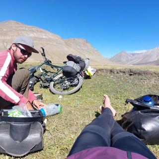Die Strecke war wieder ein holpriges auf und ab mit leichter Steigung. Meine Stimmung war ok. Nur die tausenden Flussdurchquerungen haben mich auf dem Zahnfleisch gehen lassen. Jedes Mal Schuhe aus, mit den nackigen Füßen in dem schmerzhaft kalten Wasser auf den Steinen die auch mal Spitz sind und dabei das Fahrrad da durch schaffen, dass dann gerne auch mal an den Steinen fest hing. Mir kamen tatsächlich kurz mal die Tränen. Ich wollte einfach nicht mehr.